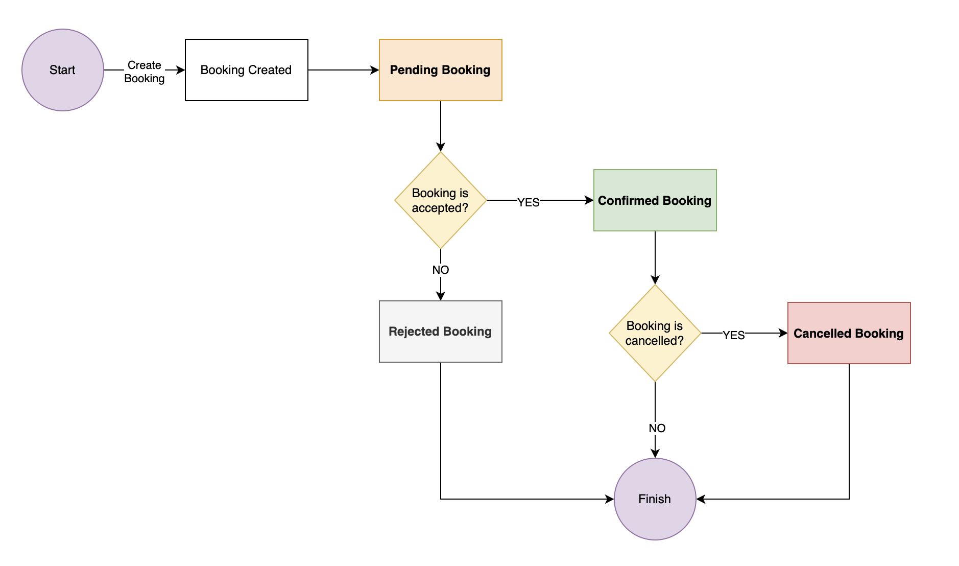 Below is a diagram explaining the booking lifecycle and its state transitions: